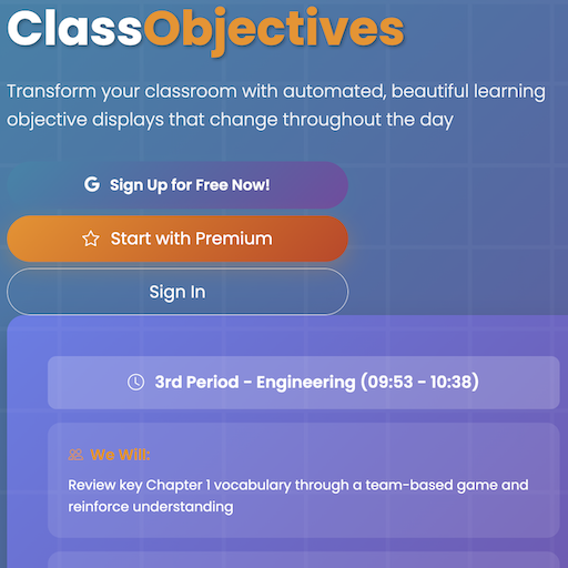 Transform your classroom with automated, beautiful learning objective displays that change throughout the day